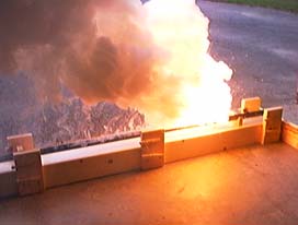 |  | A 4 foot length of 1 inch X 1/8 inch angle is used for containing the powder train. This is mounted on a long