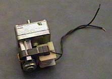 * A Dayton model 2Z806 gearmotor, (image at left)available at an industrial supply house called Graingers, which has outlets all over the country (U.S.A.) This model's output shaft runs at 6 R.P.M., and is perfectly suited to the effect. If you want a slow-moving ghost, the 2Z805 runs at 2 R.P.M. This part costs about $50, but is well worth it for the reliability it ofers. It is user-serviceable, and a parts list is included with each unit. (Graingers is a wholesaler - you may wish to purchase it in the name of your workplace, and pay cash. Use http://www.grainger.com/ to locate an outlet near you.) |