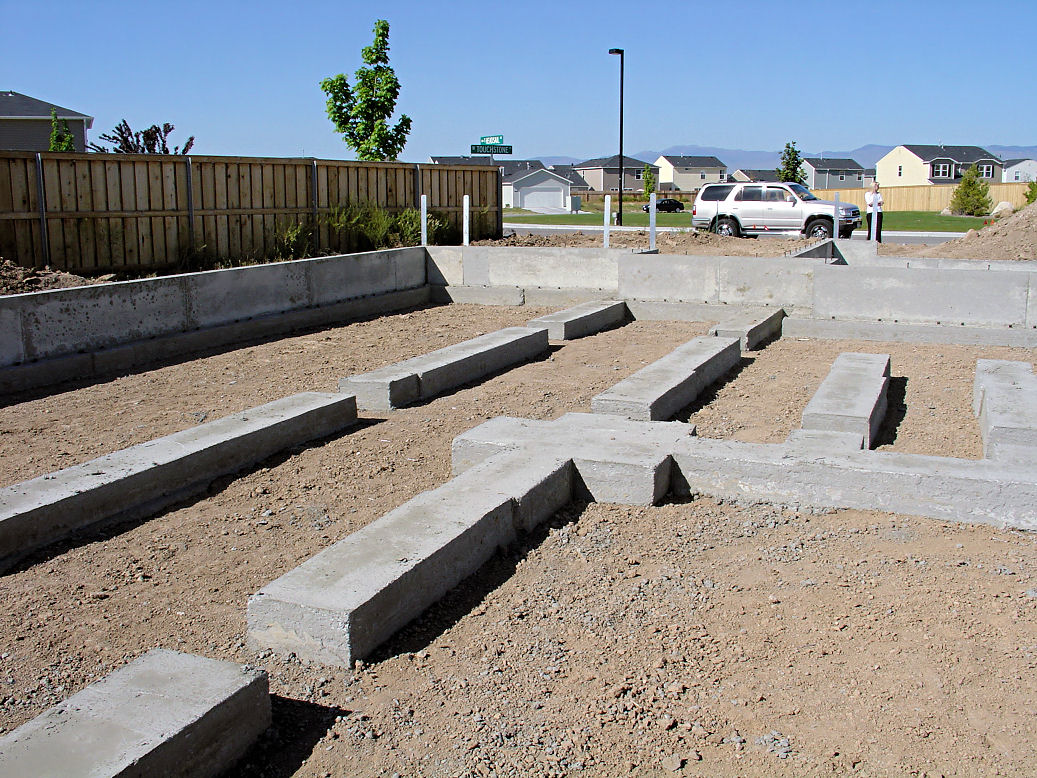 Front of the house with the finished foundation.