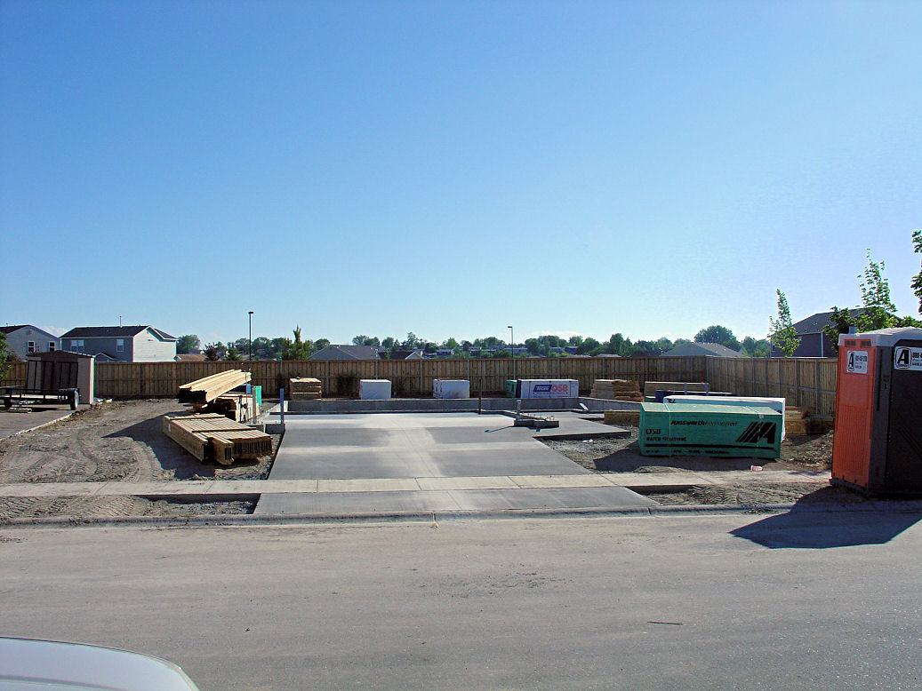 The exterior concrete and driveway are done. Look at all the building materials ready to go up.