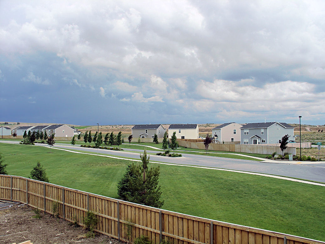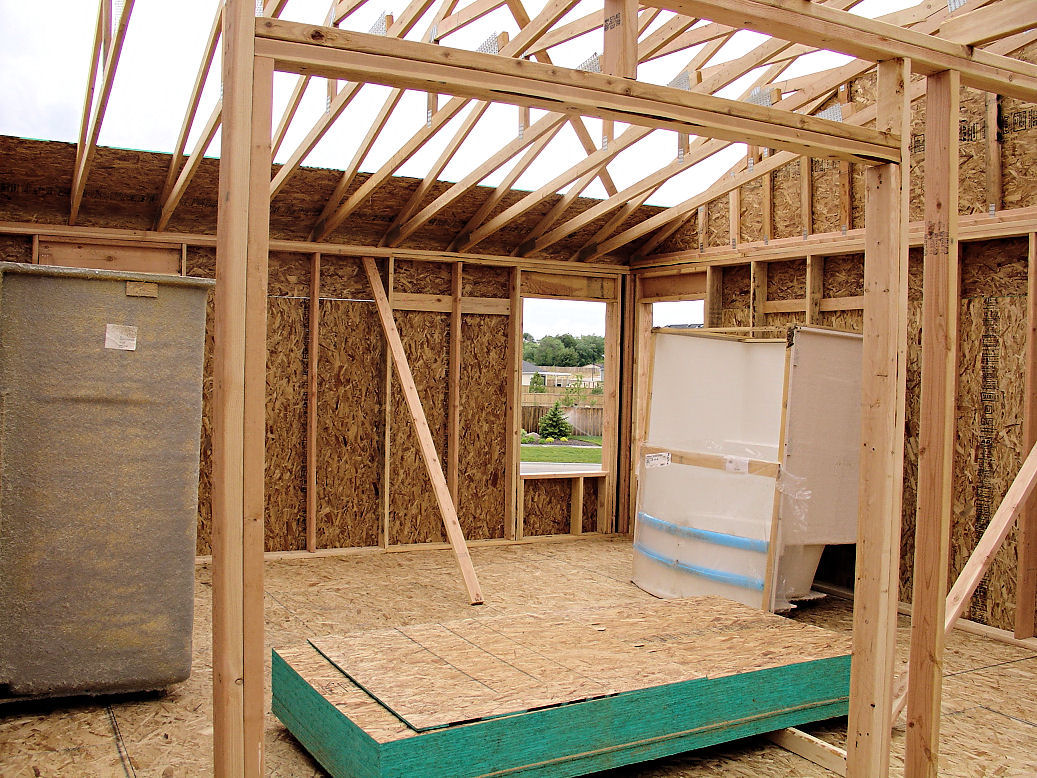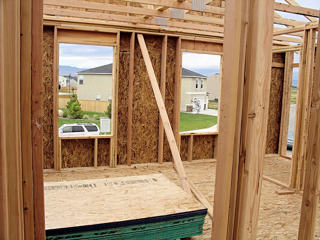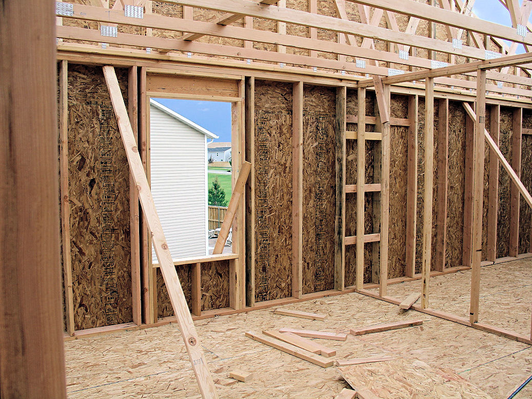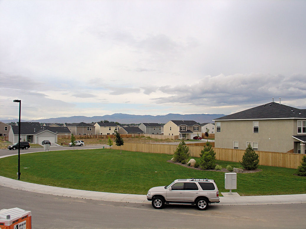 Looking into the master bedroom from the double doorway. Note the cathedral ceiling.