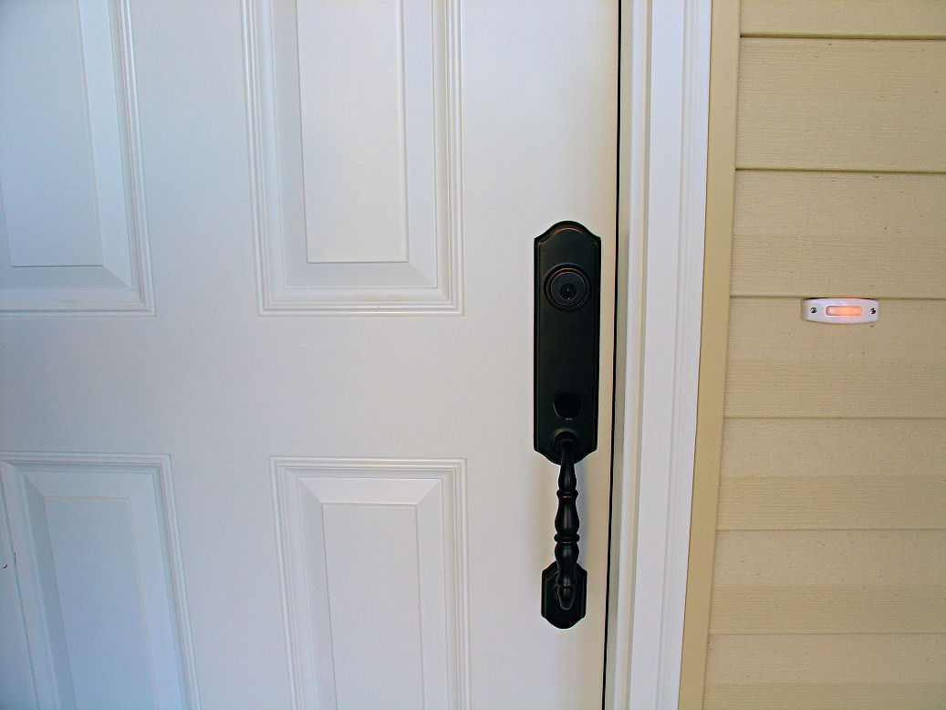 The front door handle I chose to match the hardware and fixtures throughout the house.
