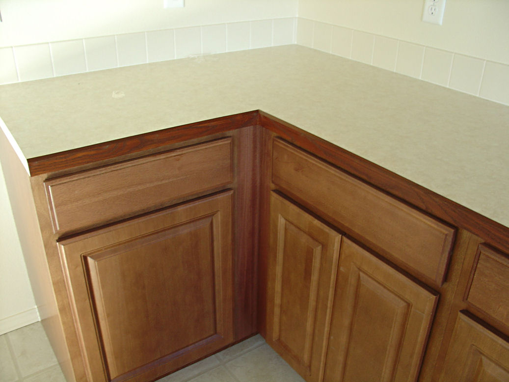 Closeup of the counter tops with the stained edge finished.