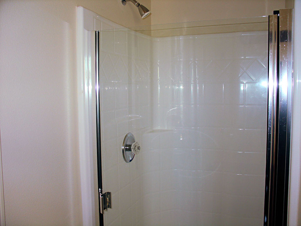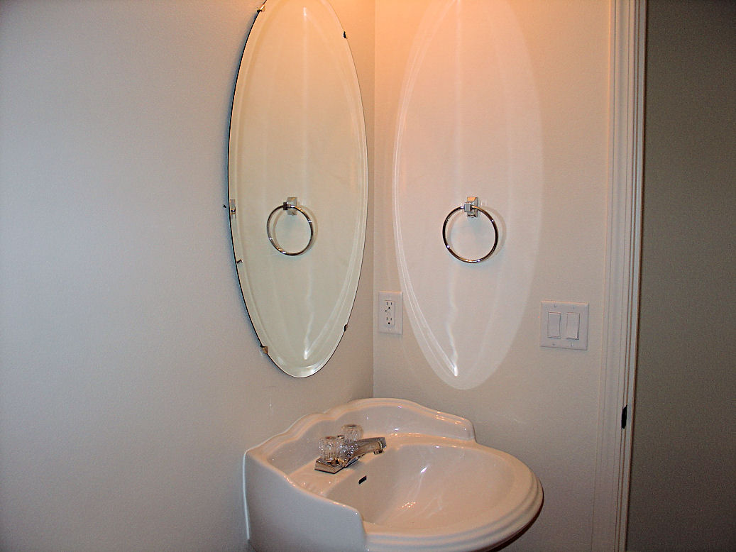 The master bathroom with mirrors installed.