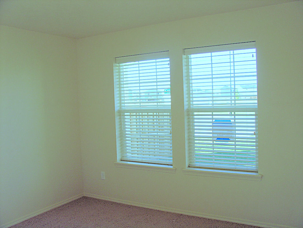The front of the living room with blinds.