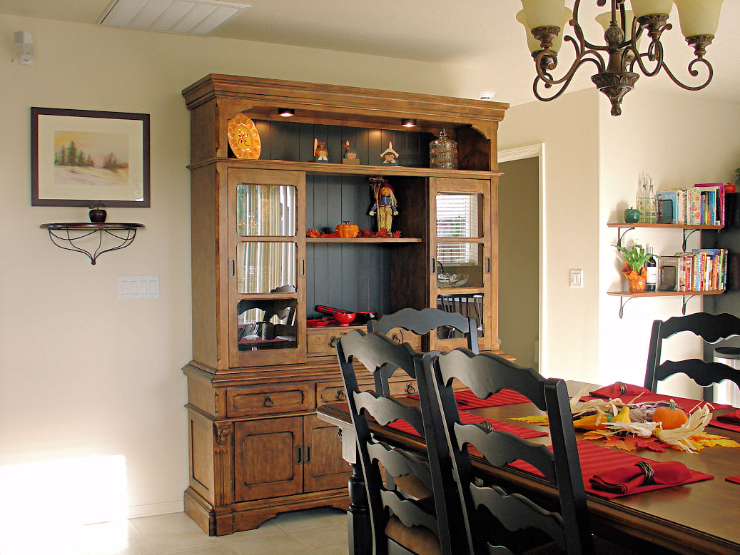 View of the kitchen showing the new shelves.